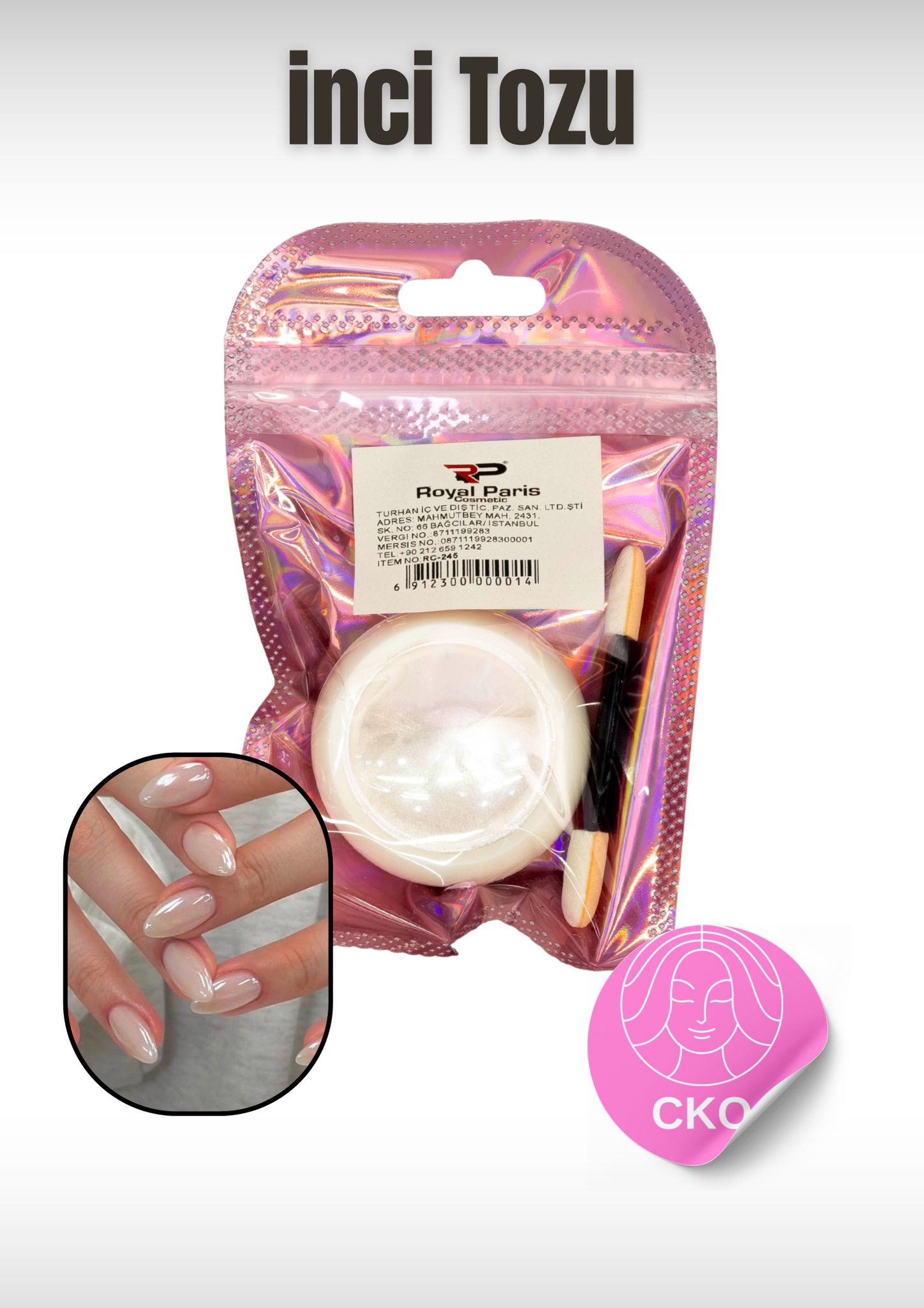Tırnaklara doğal parlaklık ve inci efekti kazandırmak için kullanılan bu ince yapıdaki toz, şık ve zarif bir görünüm oluşturur. Kolay uygulanır ve homojen bir sonuç verir.